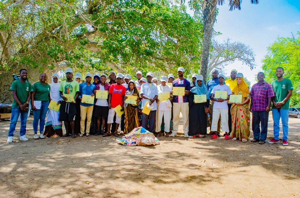 Since 2022, the team in Kenya has collaborated with nine fishing communities along Kwale County’s 50 km coastline to promote sea turtle conservation. Through training and continuous engagement, they have empowered over 100 Balozi Wa Kasa (Sea Turtle Ambassadors) to spread awareness about the importance of sea turtles and the threats they face. This peer-to-peer education has significantly increased fishers’ willingness to protect turtles and their habitats.